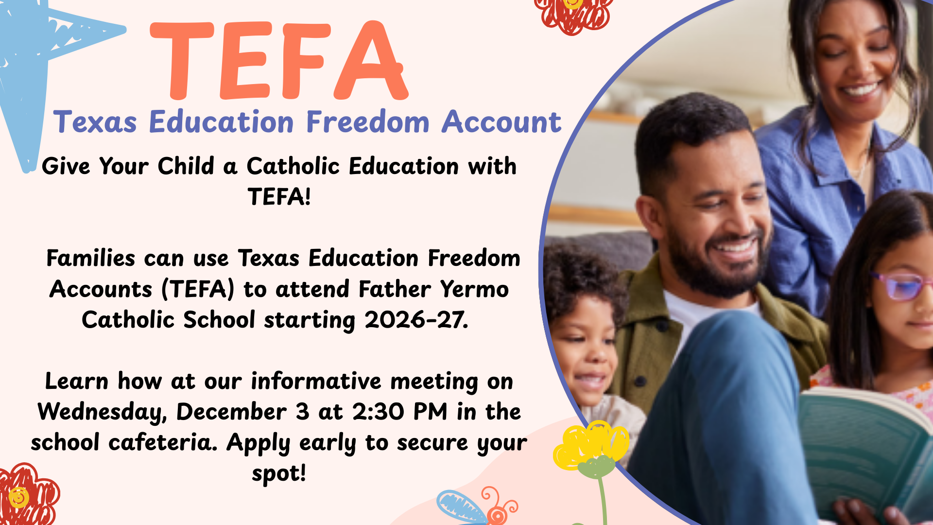 Give Your Child the Gift of Catholic Education at Father Yermo School! Learn more about Texas Education Freedom Accounts... Published December 1, 2025